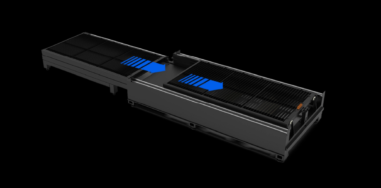 Thiết kế hai bàn cho phép chuyển đổi nhanh chóng, giảm thời gian tải và tăng năng suất.