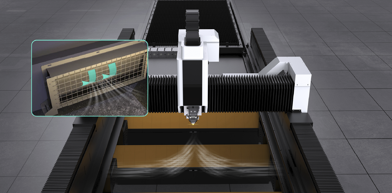Hệ thống hút bụi theo vùng đạt hiệu suất hút bụi ≥95%, cải thiện hiệu quả môi trường cắt.