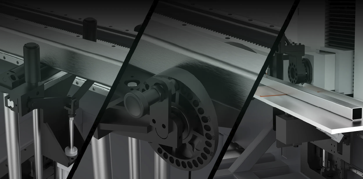 Hệ thống có hỗ trợ con lăn theo vùng nạp liệu và hỗ trợ nghiêng theo vùng dỡ liệu. Hệ thống điều khiển thông minh dựa trên servo đảm bảo hỗ trợ động trong toàn bộ chu trình gia công ống, đảm bảo độ chính xác gia công cao và ổn định.
